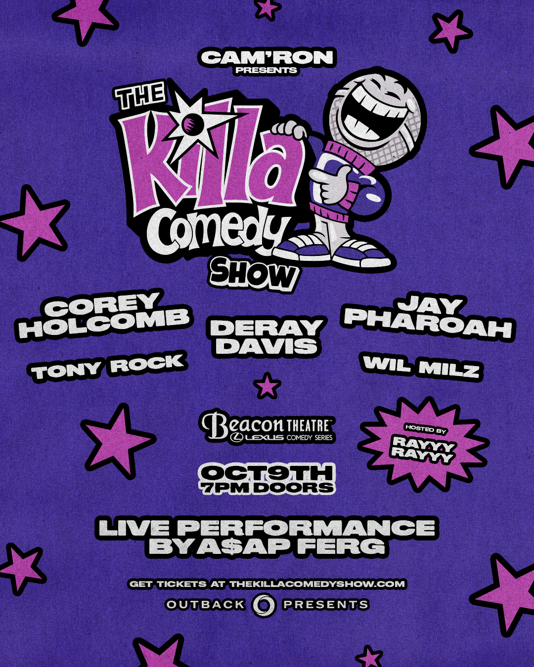 August 27, 2025 - Today, rap icon, cultural tastemaker, and larger-than-life personality Cam’ron announced first ever, “The Killa Comedy Show,” taking place on Thursday, October 9th at the Beacon Theatre. Partnering with concert promoter, Outback Presents, this landmark event will bring together some of today’s sharpest comedians and special musical guests for a one-of-a-kind live experience that only Cam’ron could deliver.As part of the ‘Killa Comedy Show,” Cam’ron will be accompanied by comedians DeRay Davis, Corey Holcomb, Jay Pharoah, Tony Rock, Wil Milz and Rayyy Rayyy. A$AP Ferg is also slated to deliver an electrifying performance. The show will include a combination of live comedy and music performances. Bringing together comedians and performers with deep New York roots, The Killa Comedy Show stands as both a milestone for the city’s comedy scene and a cultural hub for the community at large. Pre-sale tickets will be available beginning August 26th at 10am local time. An additional local presale will kick off on August 27th at 10 am local time ahead of the general on-sale that begins on Thursday, August 28th at 10am local. All tickets will be available for purchase by visiting thekillacomedyshow.com.