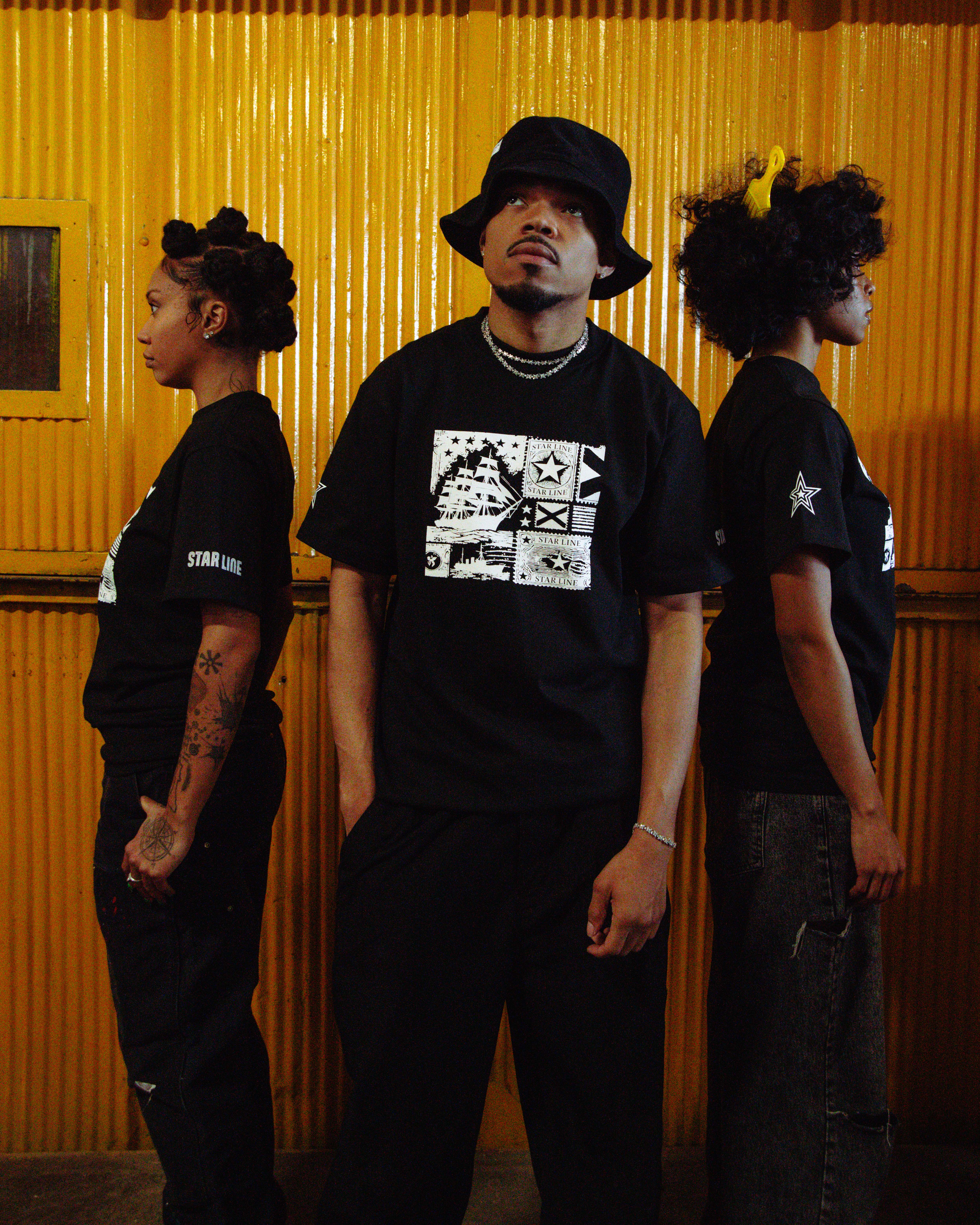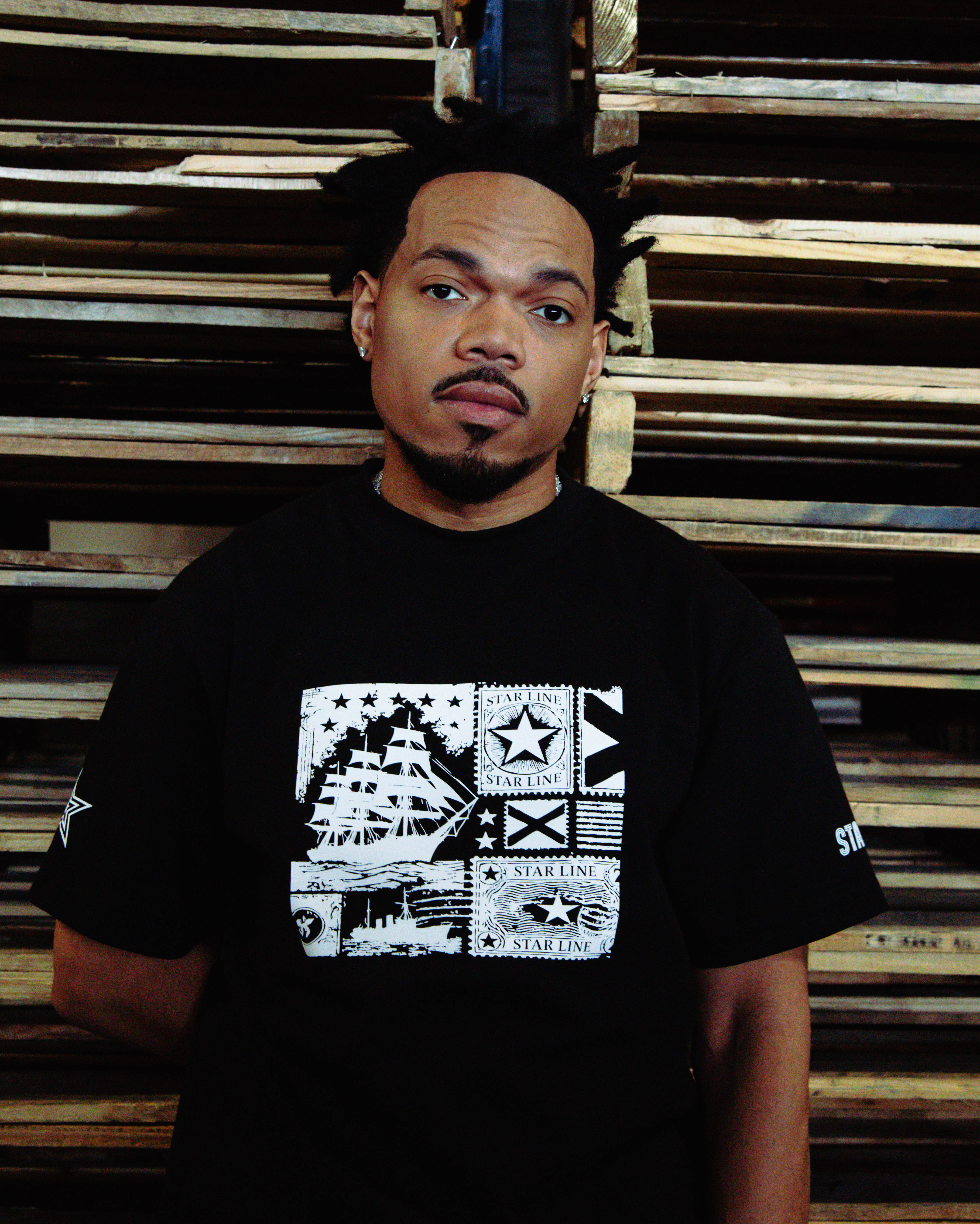 April 25 2025 // Grammy-winning artist and independent innovator Chance the Rapper continues to expand his creative universe with the release of an exclusive new clothing brand inspired by his highly anticipated Star Line project. Today marks the brand’s third drop: a limited-edition graphic tee featuring bold, distinctive visuals that highlight Chance’s commitment to artistic storytelling and his exploration of Black identity and history. This postmark tee is now available today here: https://starlinegallery.co/