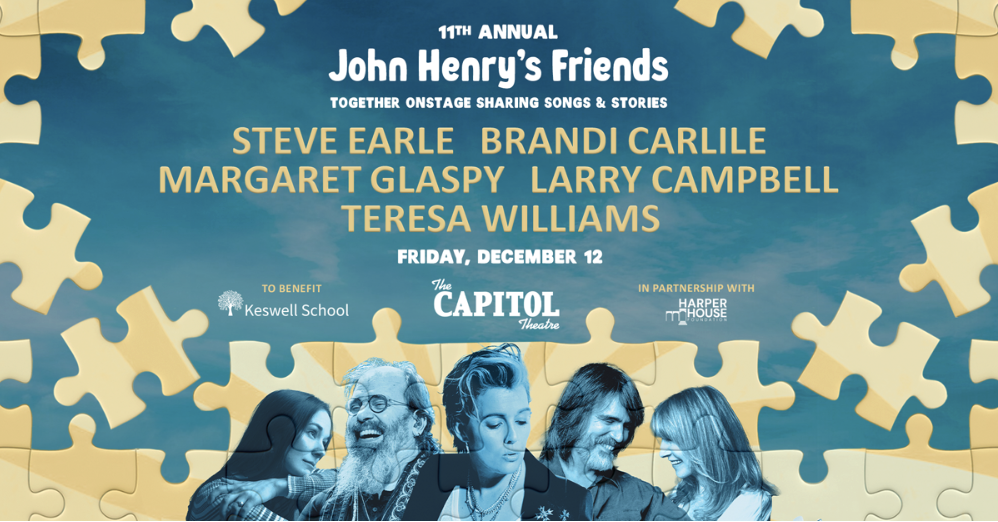 Live at The Capitol Theatre on Friday, December 12, 2025, Steve Earle in partnership with Harper House Foundation and The Capitol Theatre present the 11th Annual John Henry's Friends Benefit featuring Steve Earle, Brandi Carlile, Margaret Glaspy, Larry Campbell & Teresa Williams to benefit The Keswell School, an educational program for children and young adults with Autism Spectrum Disorder (ASD). All of the artists will share the stage and participate in a guitar pull swapping stories and songs, for an unforgettable night of incredible music.All proceeds from this event, as has been the case with each of the previous John Henry’s Friends Benefit concerts, will be donated to The Keswell School, an educational program for children and young adults with Autism Spectrum Disorder (ASD).