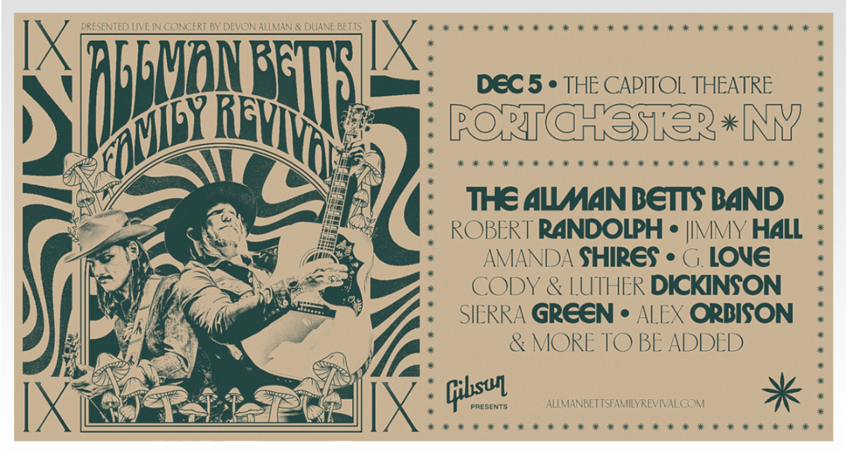 GIBSON presents the ninth annual Allman Betts Family Revival. Get ready for an unforgettable night of music at the 9th Annual Allman Betts Family Revival! This extraordinary live music experience is hosted by Devon Allman and Duane Betts, the sons of Allman Brothers Band legends Gregg Allman and Dickey Betts. Inspired by the legendary Last Waltz, this tour features a revolving cast of top-tier artists from the realms of blues, Americana, country, and rock, all coming together to honor the timeless legacy and rich catalog of the Allman Brothers Band. Set against the backdrop of the famous Allman Brothers Brotherhood of Light show, blending electrifying music with stunning visuals. This unforgettable night that honors the rich history and timeless catalog of the Allman Brothers Band is a musical family reunion that promises to lift your spirits as you enjoy an authentic Allman Brothers musical experience.