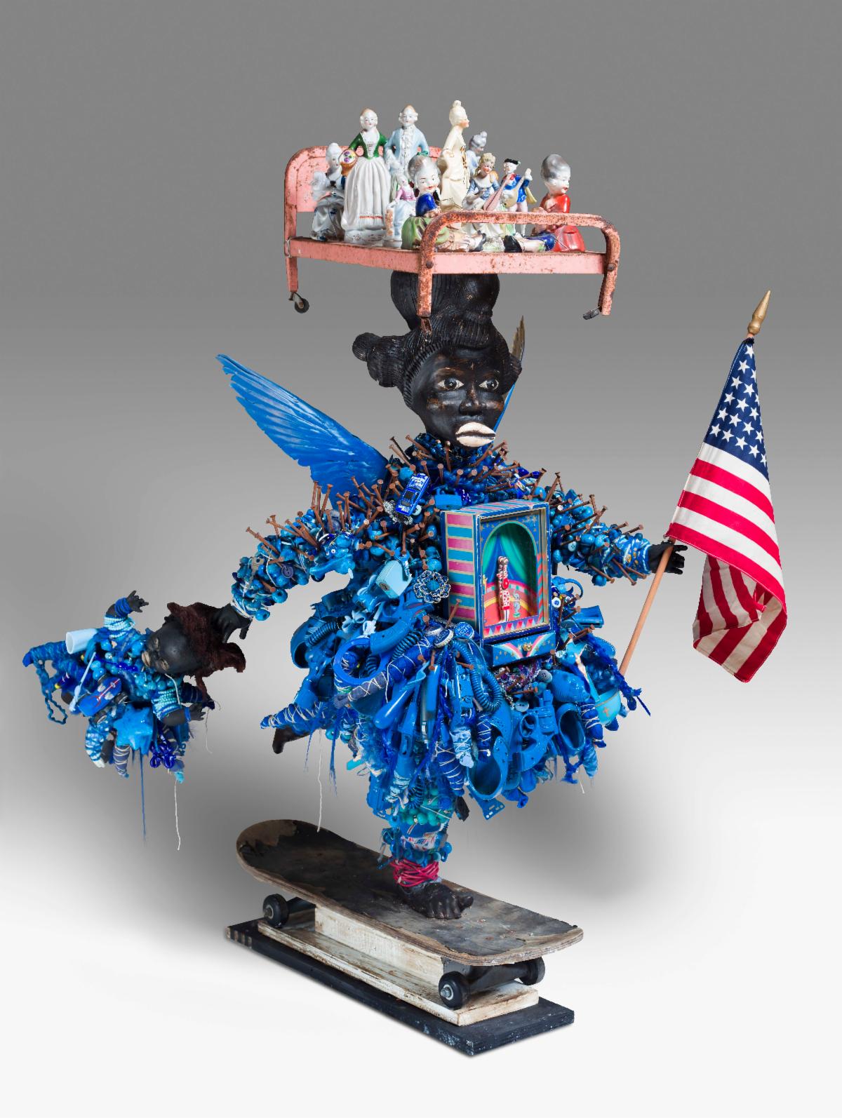 Visitors will experience how people have celebrated national and personal moments in history, from a display of hundreds of 20th century patriotic snapshots to souvenirs collected from America’s Centennial in 1876. The exhibition explores the symbols artists turn to when celebrating or commenting on the United States: George Washington’s many faces, eagles appearing across books, baskets, and coverlets, flags seen as quilts or as documentation of the moon landing, and more. Contemporary artists featured in the exhibition, such as Robert Colescott, Kay WalkingStick, and Howard Finster, continue to revisit national symbols and explore their resonance.