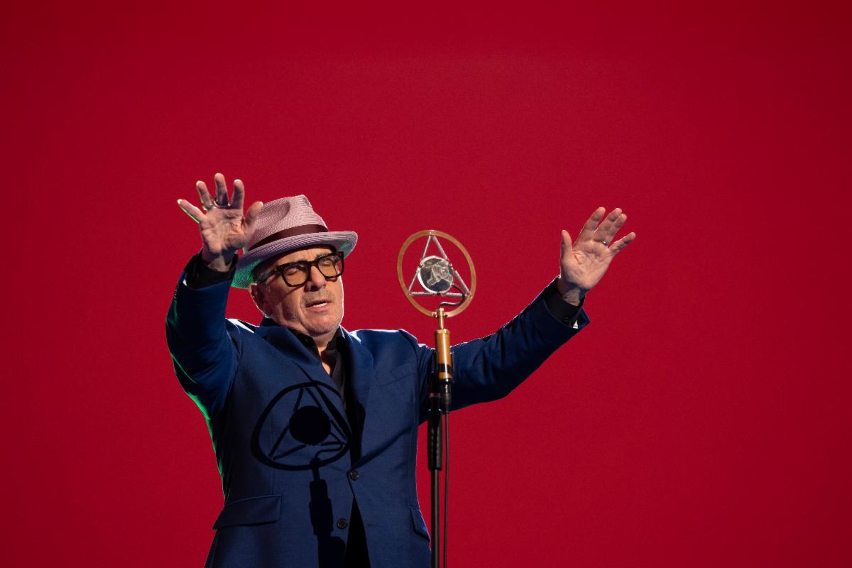 Costello is joined by his band the Imposters and special guests multi-instrumentalist Eleanor Whitmore and Seán McKeon on uilleann pipes for a performance of selections from his catalog along with stories accompanied by Costello’s own artwork; daubs, cartoons and visual satires along with related family photographs projected on immersive screens.
