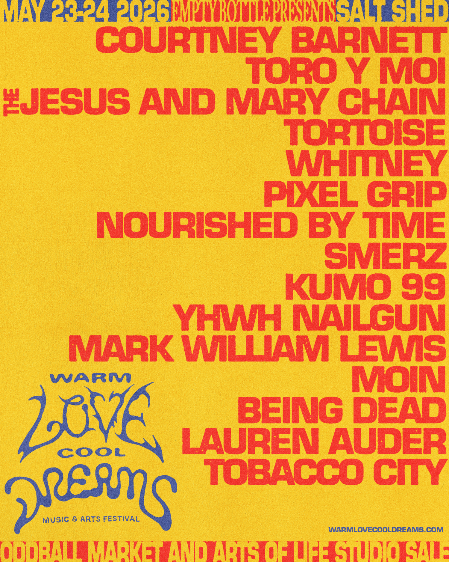The festival boasts an exciting, eclectic lineup that runs the gamut, including Australian indie royalty Courtney Bartnett, the genre-shapeshifting maestro Toro y Moi and legendary Scottish post-punk quartet The Jesus and Mary Chain. Alongside Chicago mainstays Tortoise, Whitney and Pixel Grip and sensations of the underground like Nourished By Time, Smerz and YHWH Nailgun, Warm Love Cool Dreams aims to amplify the next wave of boundary-pushing artists, connecting the city of Chicago to the worldwide avant-garde in one unified, forward-thinking celebration.