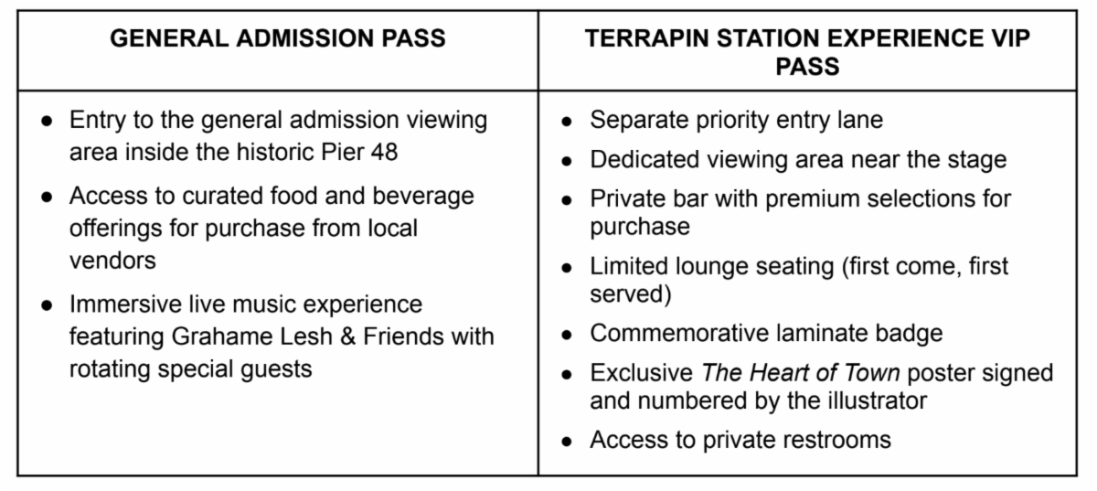 “We’re proud to stand with our partners to present The Heart of Town at Pier 48,” said Larry Baer, President & CEO, San Francisco Giants. “Beyond an amazing celebration of music, it’s a gathering that embodies San Francisco’s enduring spirit. As Mission Rock takes shape as a vibrant destination for culture and connection, we’re thrilled to collaborate with Grahame Lesh, Relix, Terrapin, and Dayglo to bring such an incredible event to the city we love.”