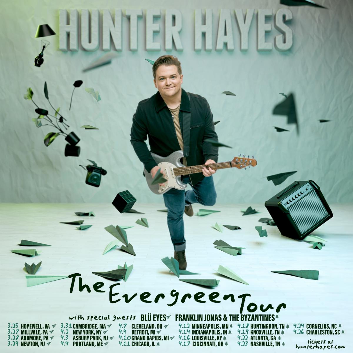 On March 25, Hayes will kick off the Evergreen Tour, a 22-city run across the U.S., including stops at The Gramercy Theatre in New York City, The Stone Pony in Asbury Park, NJ, House of Blues in Chicago, and Brooklyn Bowl in Nashville, among others. Supporting Hayes on tour will be Franklin Jonas (fresh off opening for the Jonas Brothers’ 20th anniversary tour) and BLÜ EYES. Full touring routing is below. For more information and tickets, please visit www.hunterhayes.com/tour.