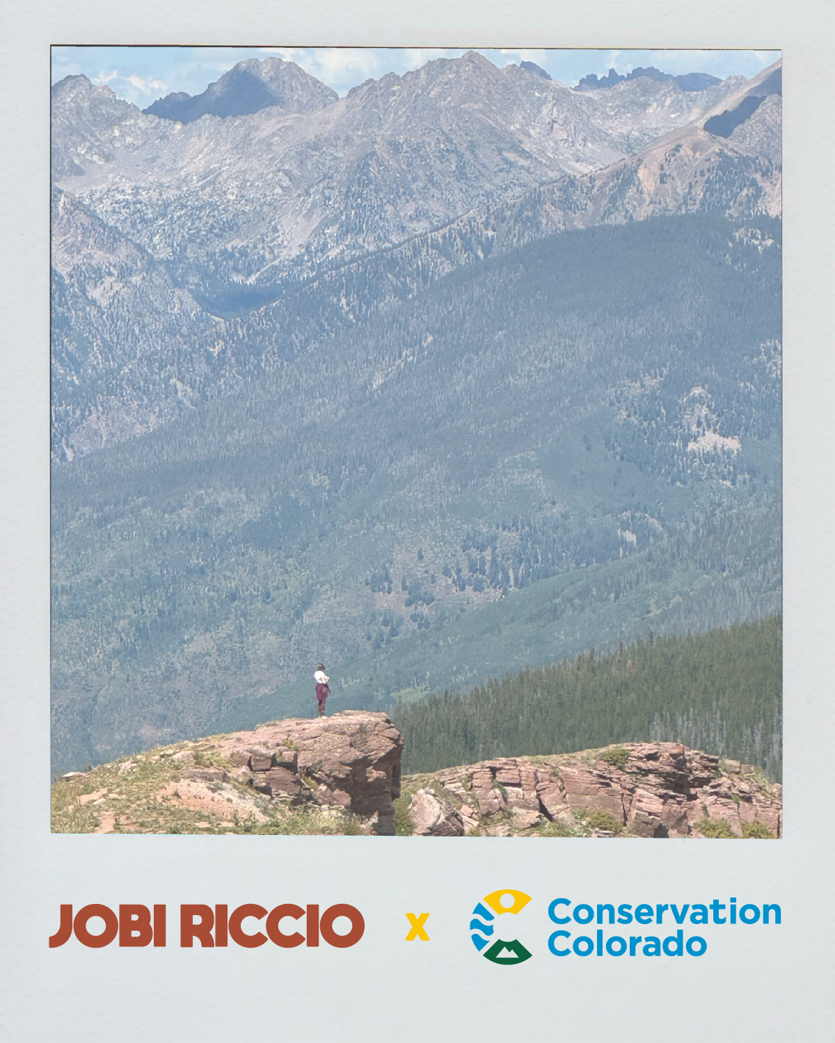Growing up in Morrison, Colorado, Riccio spent her childhood hiking in the Rockies and enjoying nature. But as a 26-year-old in 2025, 20 of the largest wildfires in Colorado’s history have happened within her lifetime. Riccio is passionate about climate activism, and is partnering with Conservation Colorado for “Wildfire Season.” Riccio, in collaboration with visual artist Matt Cliff, has new Colorado-themed limited-edition art print postcards and will donate a portion of the proceeds directly to the organization.