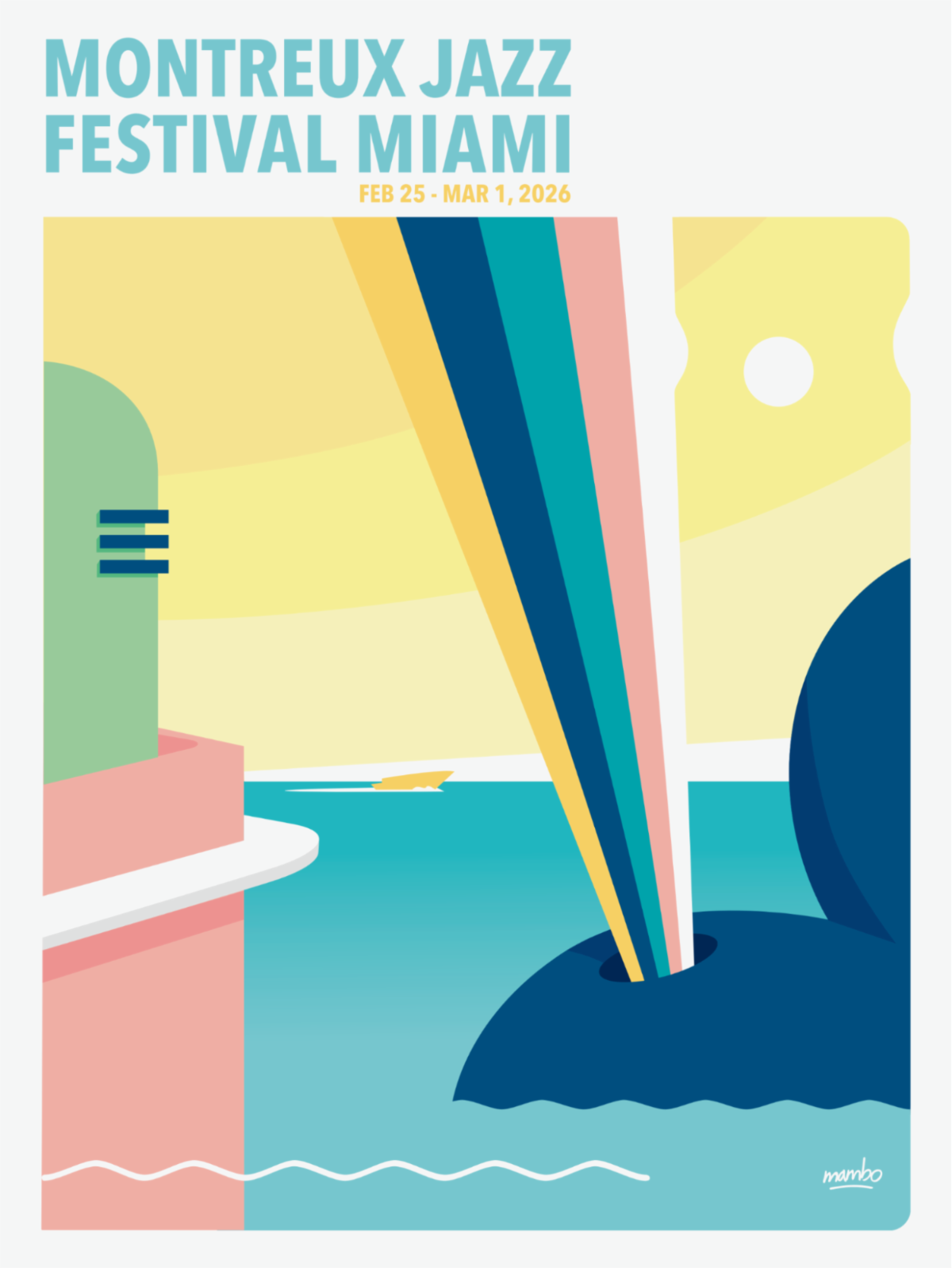 As is tradition with Montreux Jazz Festival – a Montreux Jazz Festival Miami poster for 2026 has been revealed, created by Mambo. Born in Santiago de Chile, 1969, Mambo is a polyglot artist, his different artworks series go from semi-abstract graphic interplays of lines and spontaneous designs (Brainology), to abstract action painting (Strokes) as well as minimal and caricatural portraits (Humans).