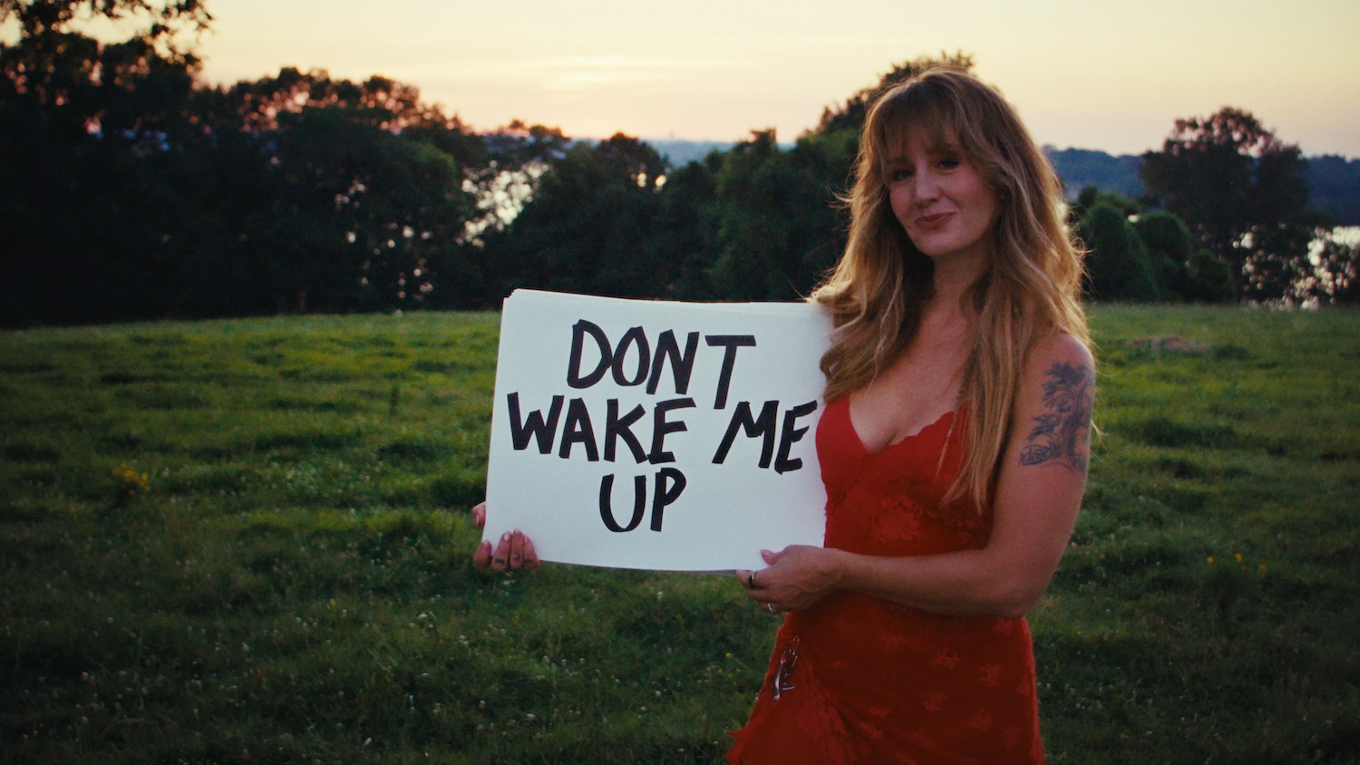 In between uncanny, siren-esque rituals of line-dancing in the woods, the accompanying video for "Don't Wake Me Up" finds Margo Price in a field, dive bar, cow pasture, cemetery, honky tonk, factory, liquor store, bowling alley, trailer park, Waffle House, Midwest strip mall and more of the locations sung throughout the song.