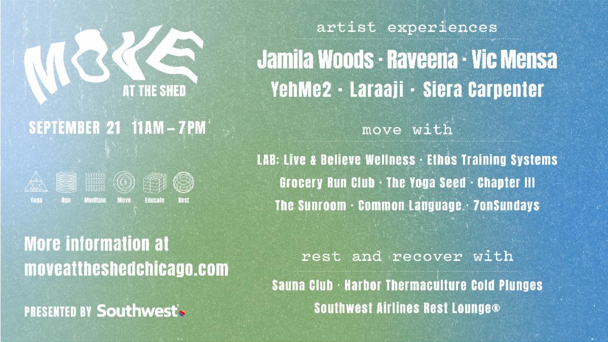 With over 15 immersive experiences and something for everybody, Move at the Shed promises Chicago’s most soul-nourishing celebration of wellness, music, and community.
