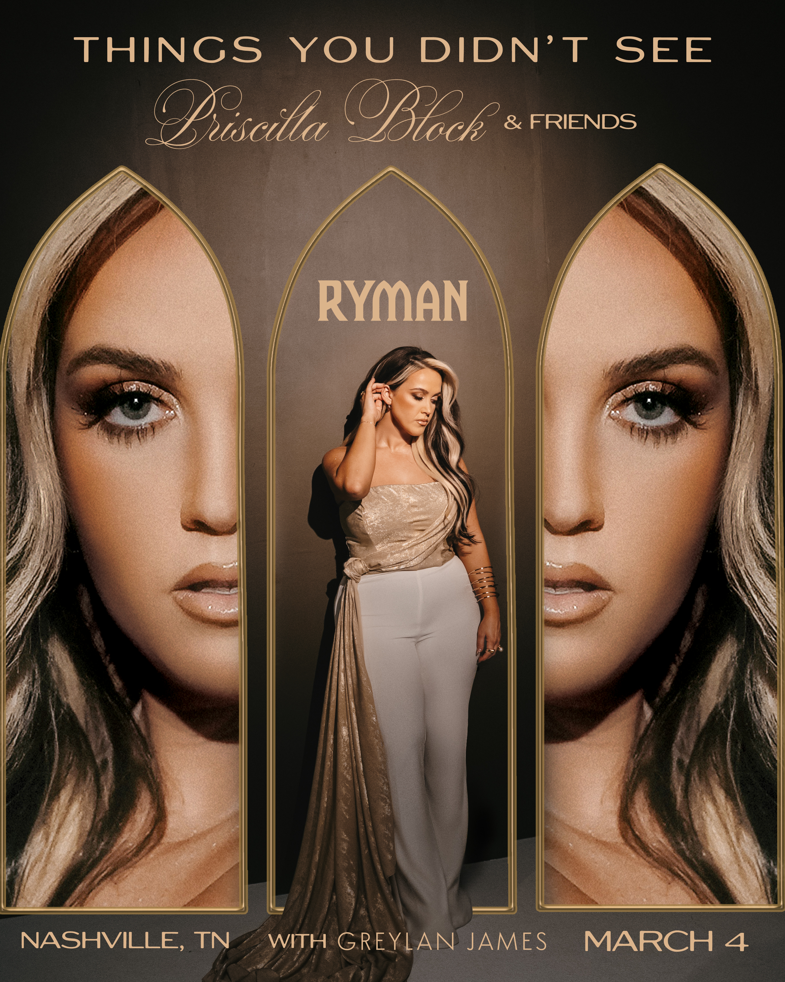 Today (10.6), PLATINUM-selling artist Priscilla Block announces her debut headlining show “Priscilla Block & Friends” at the historic Ryman Auditorium in Nashville, set for March 4, 2026, as part of her Things You Didn’t See Tour. This milestone marks a triumphant return to the city where Block honed her craft, stepping onto one of country music’s most revered stages.
