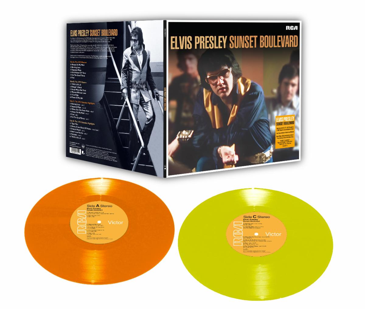 Sunset Boulevard is available in 5-CD and digital formats, including rare archival photographs and new liner notes from music historian Colin Escott, plus an introduction by longtime friend Jerry Schilling. The 2-LP ‘highlights’ edition is also offered in a Graceland Exclusive Color Variant.