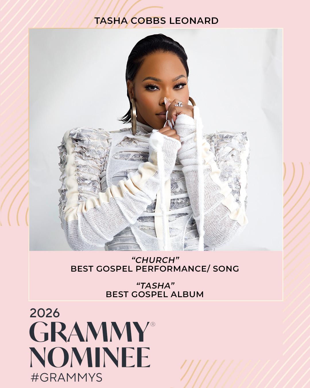 Congratulations to 3x GRAMMY-winning “gospel star” (NYT) Tasha Cobbs Leonard who today celebrates two nominations for 2026 GRAMMY Awards –– also marking her 11th career nomination: