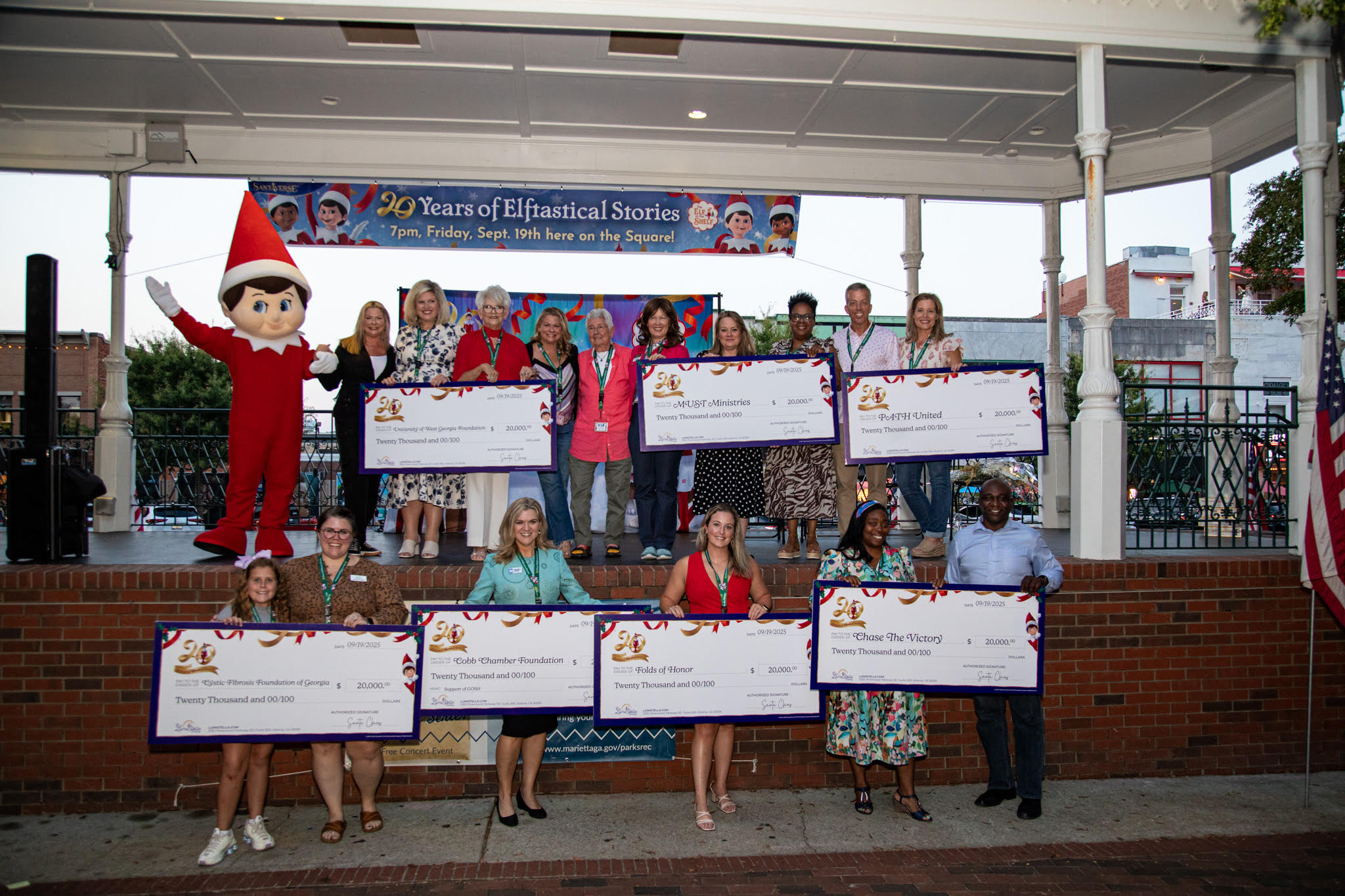 ATLANTA, GA – On Friday (9.19), The Lumistella Company — the visionary creators of The Elf on the Shelf® and the imaginative Santaverse™—marked its 20th anniversary with a festive celebration at Glover Park in Marietta, Georgia, hosted in partnership with Marietta Parks and Recreation. The location was especially meaningful, as Marietta is where it all began with the company’s very first book signing at the Marietta Museum of History on September 25, 2005. To celebrate, the event culminated in The Lumistella Company donating $160,000 to local and national nonprofit organizations. The evening highlighted two decades of growth, storytelling, and innovation for the Atlanta-based company as it gears up for its most exciting holiday season yet.