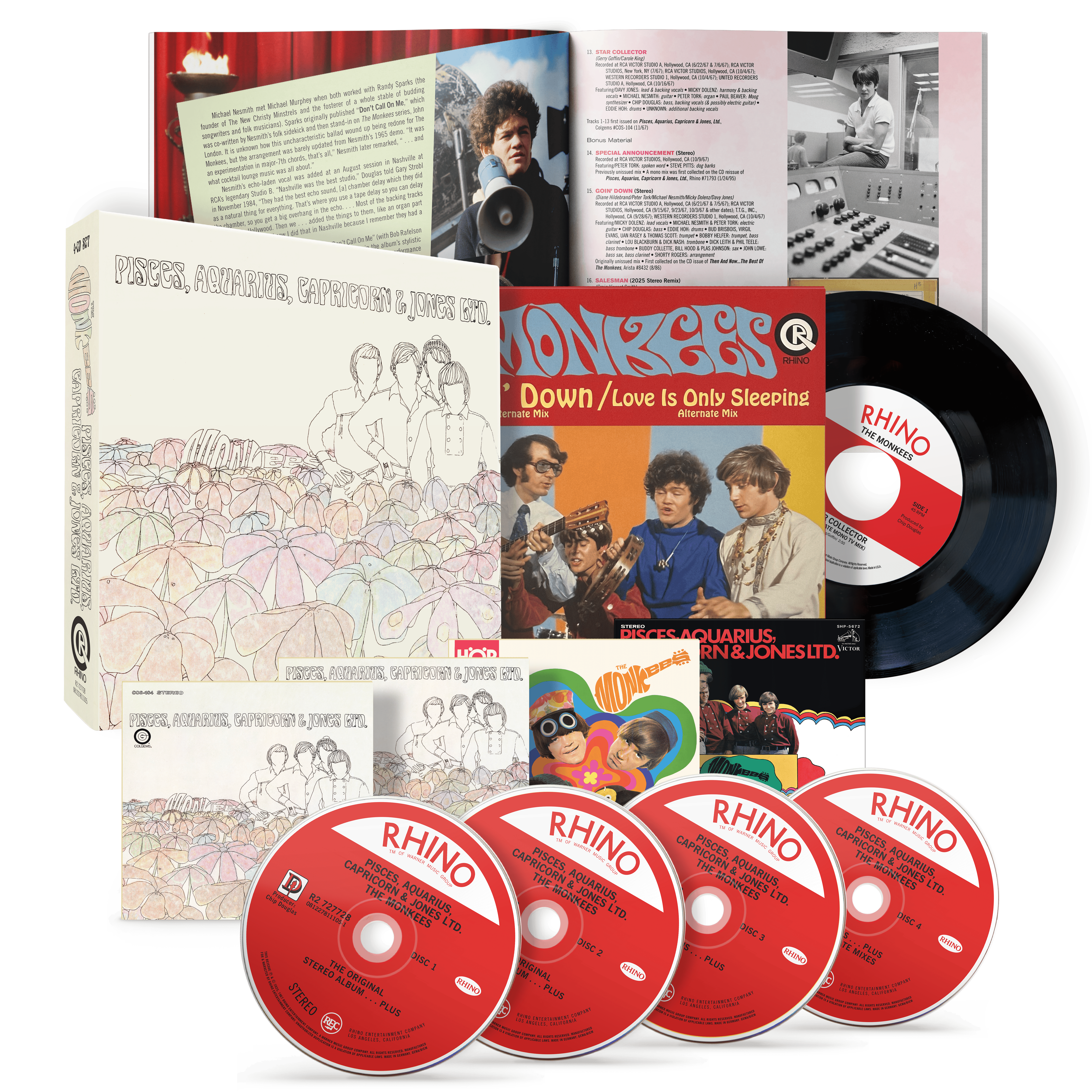 (October 2, 2025 - Los Angeles, CA) Rhino revisits The Monkees’ most sonically adventurous studio album with two new editions of Pisces, Aquarius, Capricorn & Jones Ltd. On October 3, the album will receive its first-ever vinyl pressing from the original analog stereo master reels as part of the Rhino High Fidelity series. Alongside the High Fidelity pressing, returns in an expansive 4CD/7-inch Super Deluxe Edition featuring previously unreleased recordings, new mixes, and rarities.