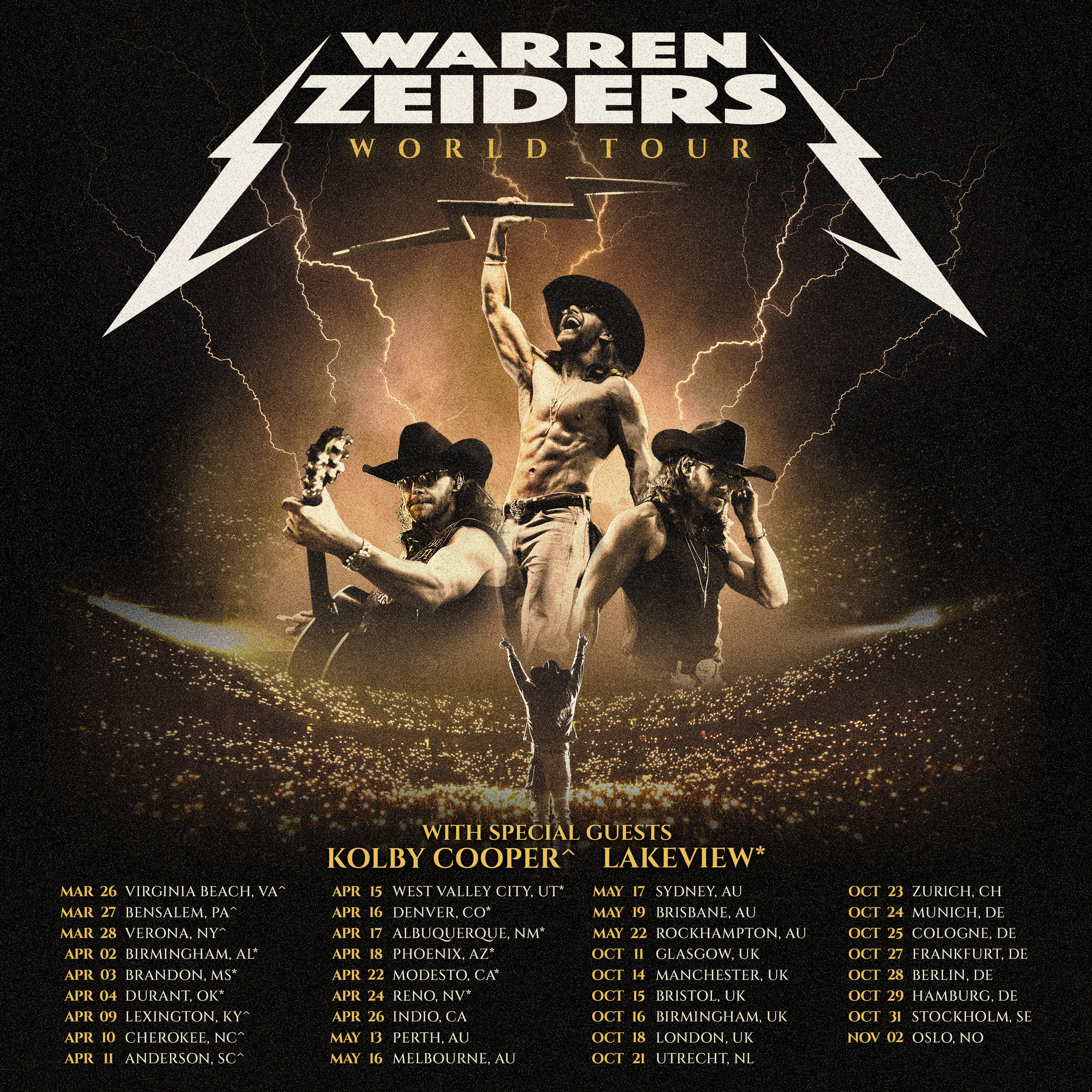 “Warren Zeiders World Tour 2026” will take the country sensation across the US, Australia and Europe next year, with special guests Kolby Cooper and Lakeview