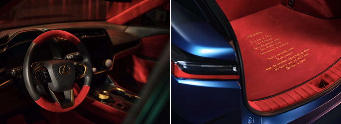 Inspired by the mood and restraint of “Blue In Green,” the custom Lexus RZ translates music into motion through a series of thoughtful design elements that blend Laufey’s artistic vision with subtle tributes to Miles Davis.