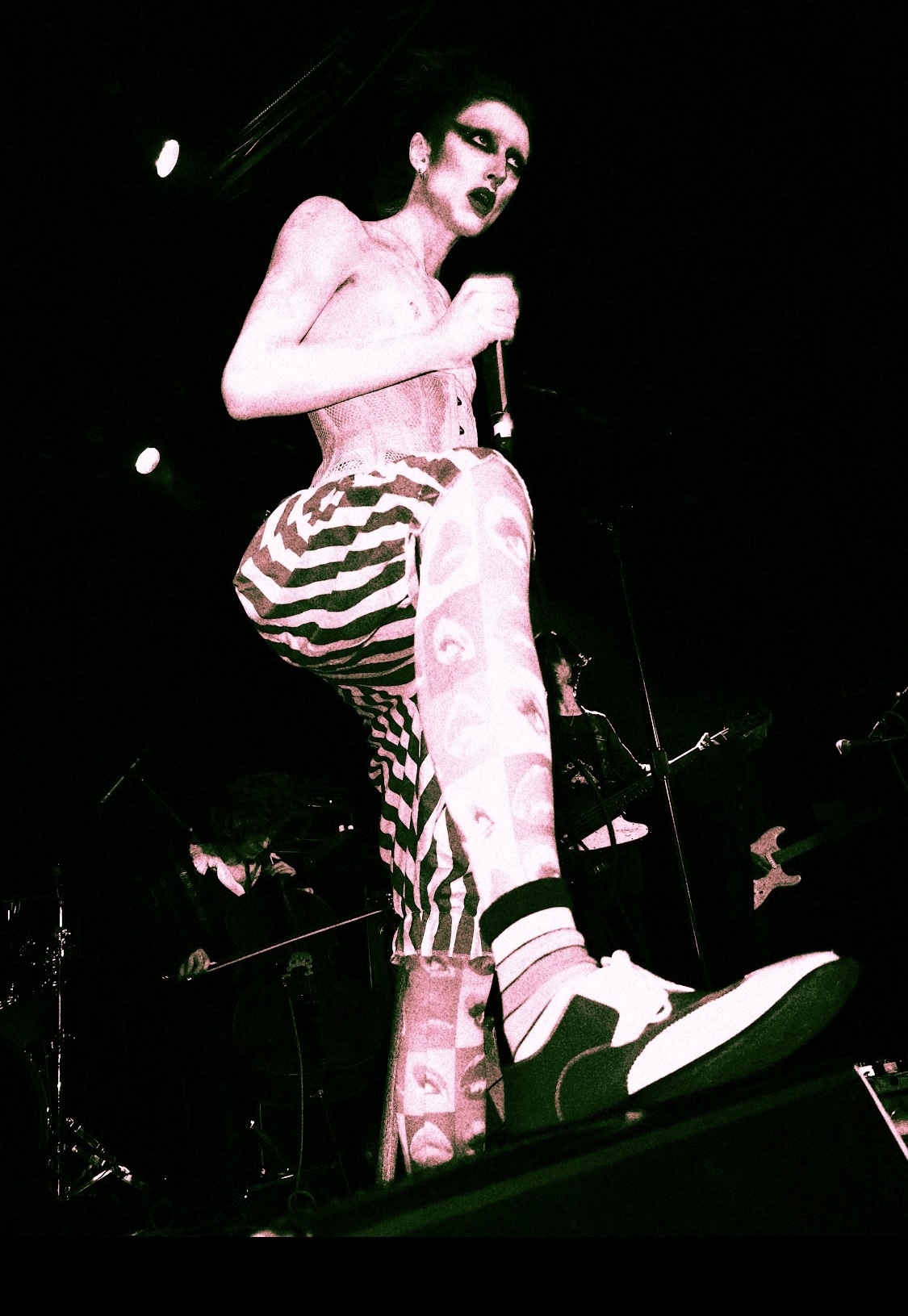 Dagger’s energy in their music is also emblematic of their electric live performance - one that parodies the effortless and magnificent glam rock personas of the late David Bowie and Lou Reed. Donning intricate leather attire and caked in dismantled drag makeup, Dagger is a force to be reckoned with. Their presence is almost cartoonish - one moment ecstatic, feral and menacing, brimming with punk energy; the next flowing, graceful and arresting, lulling the audience into a hypnotic state until the savage cycle starts all over again.