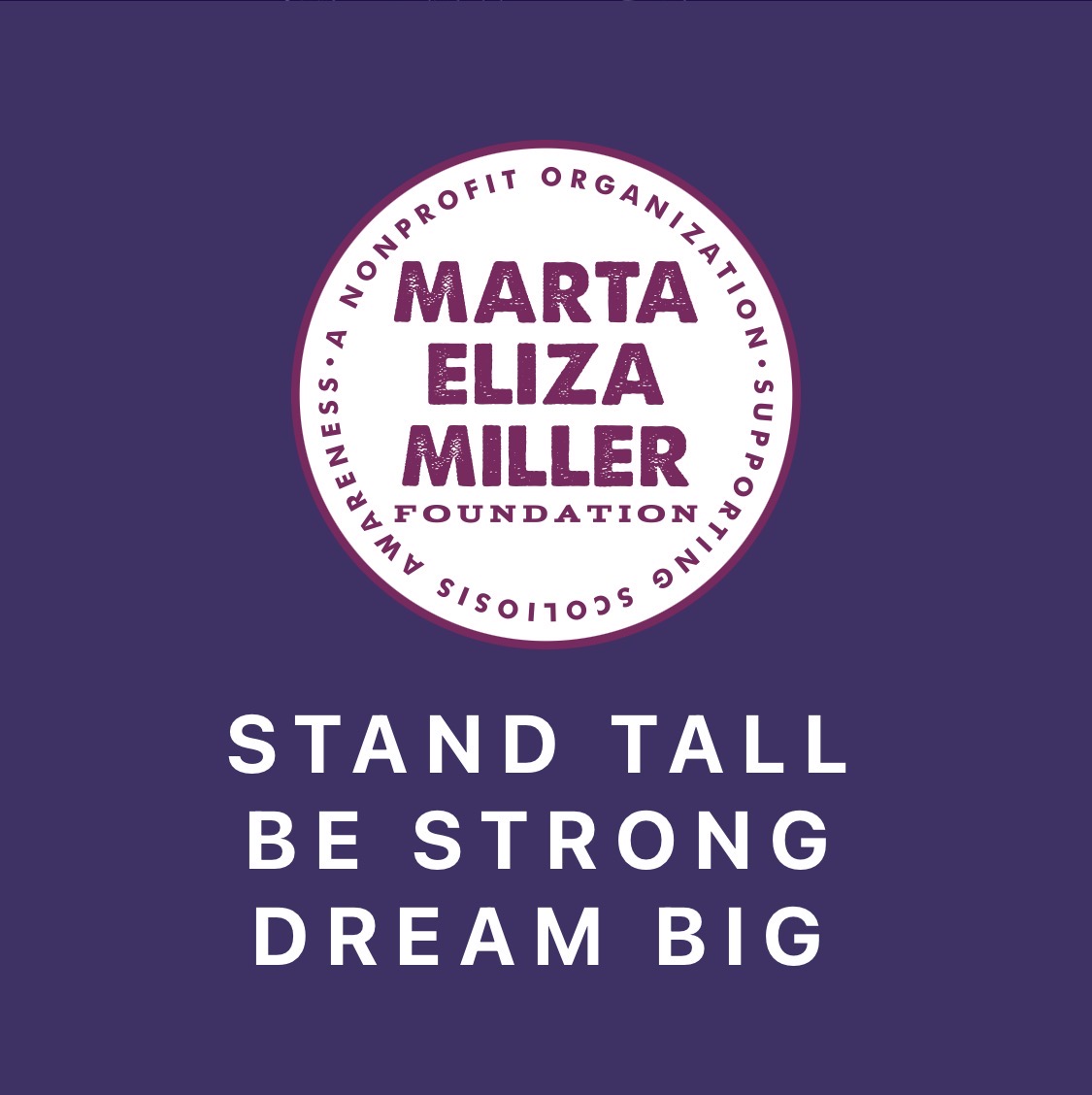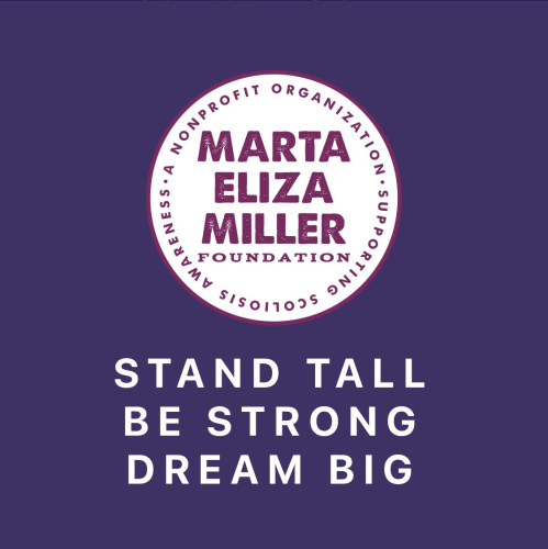 The Marta Eliza Miller Foundation (MEMF) is a 501c3 nonprofit organization created to support scoliosis awareness. The goal is to better educate and help youth with the mental and physical struggles of having scoliosis. The MEMF motto is to STAND TALL, BE STRONG and DREAM BIG.